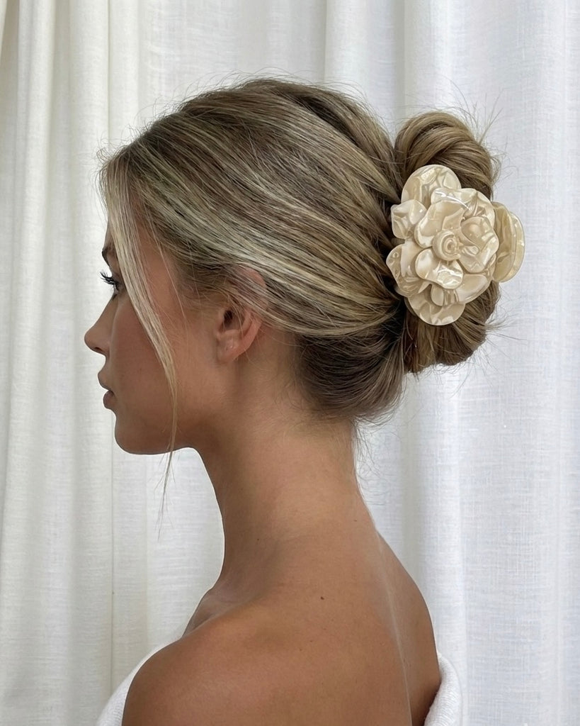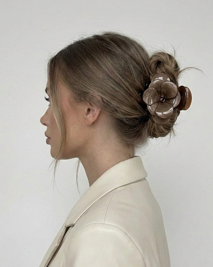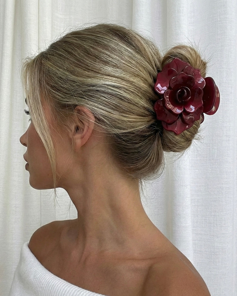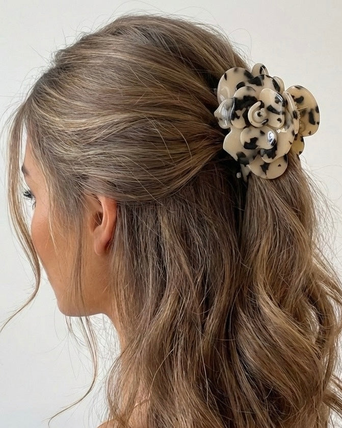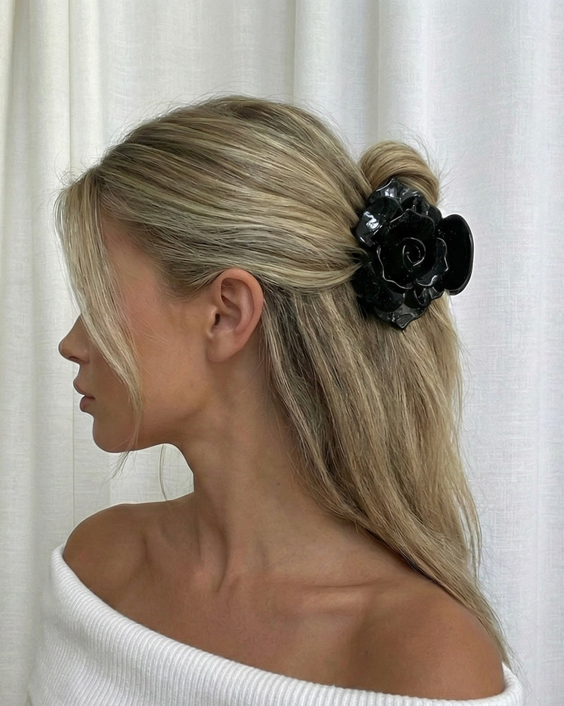 Gefertigt aus hochwertigem, langlebigem Acetat, bietet die Elle Haarspange sicheren Halt und bewahrt ihre Form, ohne das Haar zu belasten. Das filigrane Rosendesign setzt dezente Glamour-Akzente und macht jede Frisur zu einem stilvollen Statement.