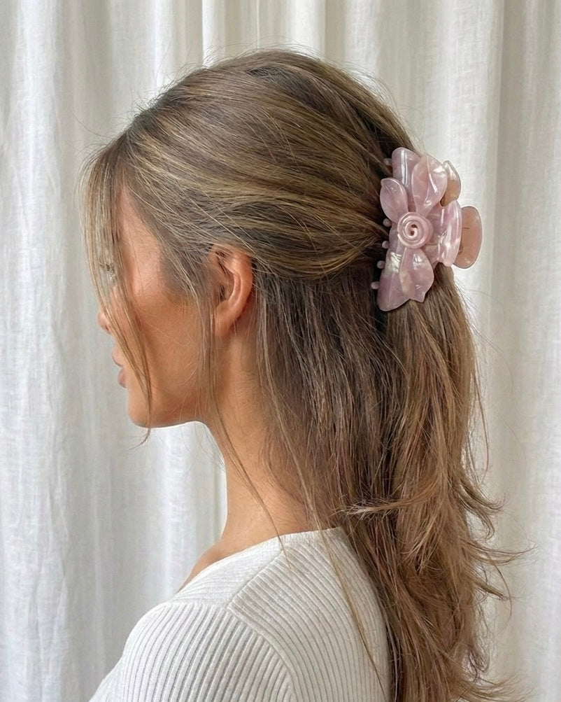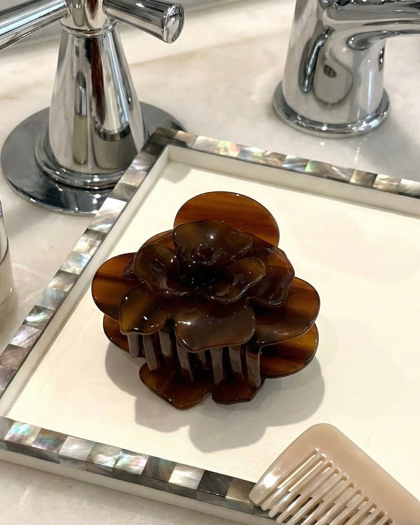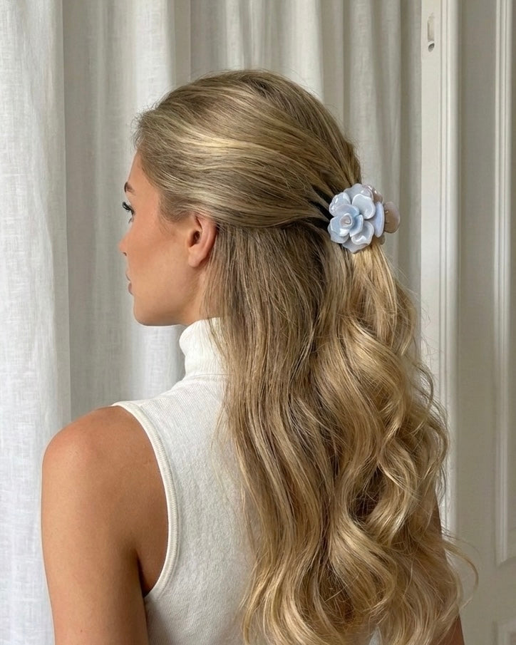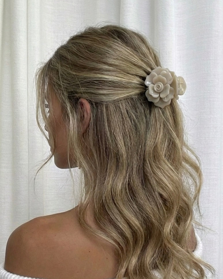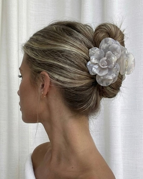 Gefertigt aus hochwertigem, langlebigem Acetat, bietet die Elle Haarspange sicheren Halt und bewahrt ihre Form, ohne das Haar zu belasten. Das filigrane Rosendesign setzt dezente Glamour-Akzente und macht jede Frisur zu einem stilvollen Statement.