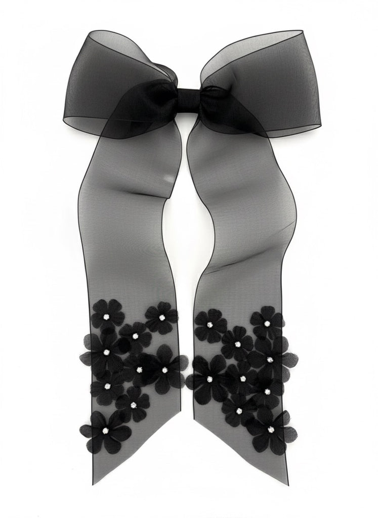 Embrace the beauty and craftsmanship of our handmade Grace Organza bow in timeless black. Its generous size ensures that it stands out, making it perfect to wear for special occasions or as a decorative accent to complete your unique look.
