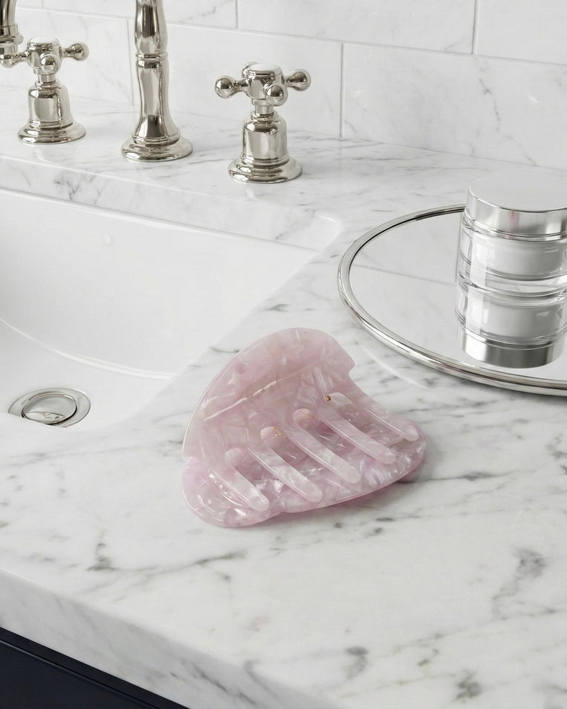 The Luma Flat Claw Clip in Coral Blush is a sleek reinterpretation of seaside elegance. Designed with a low-profile silhouette, this clip glides seamlessly into your hair while offering a secure hold—all with zero bulk. Crafted from premium iridescent acetate, it glows in gentle hues of rose, lavender, and ocean pearl. Perfect for sleek buns, half-up styles, or a quick twist, it’s your new summer go-to—whether you’re styling for golden hour or beach days. Best styled over a fine elastic or hair tie for added grip and polish—no pulling, no slipping.